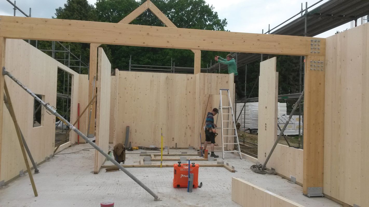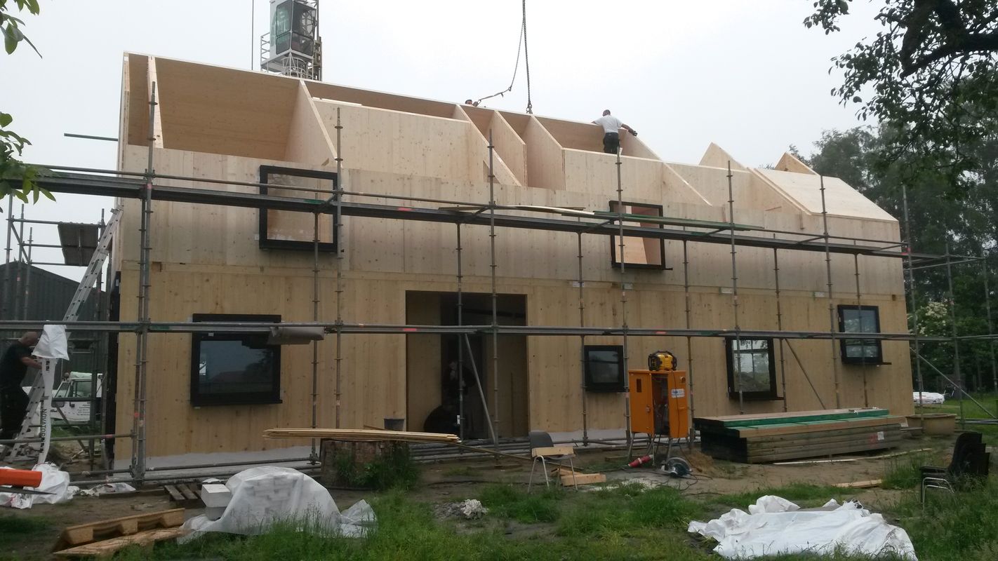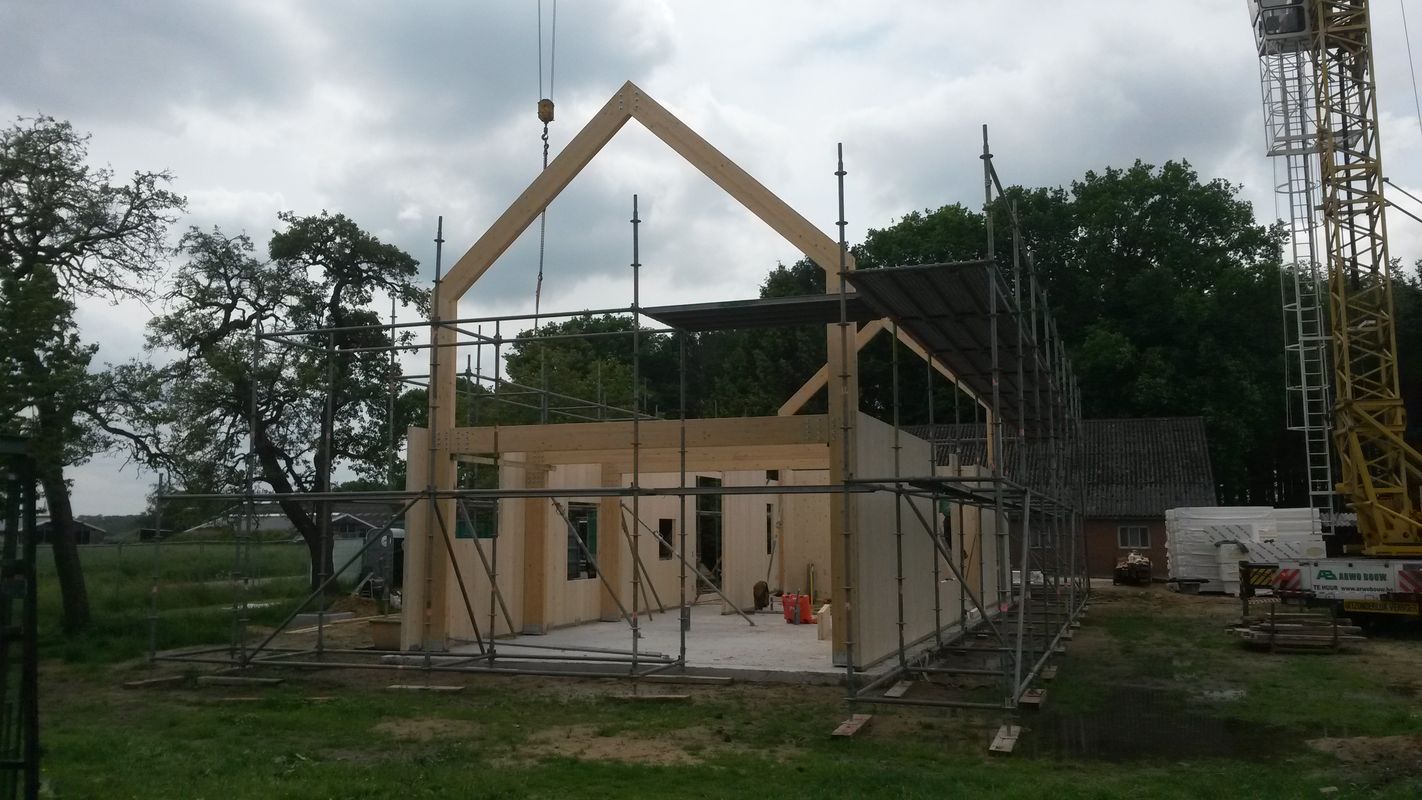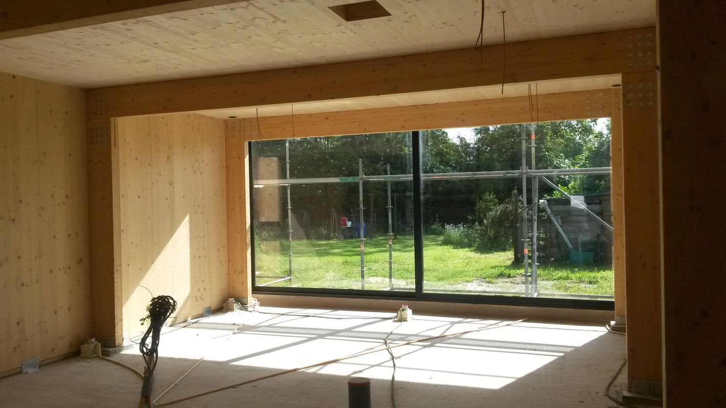 De constructie van deze woning in Purmerend is uitgevoerd met houten elementen.