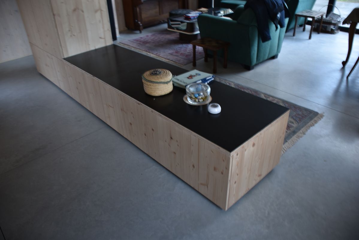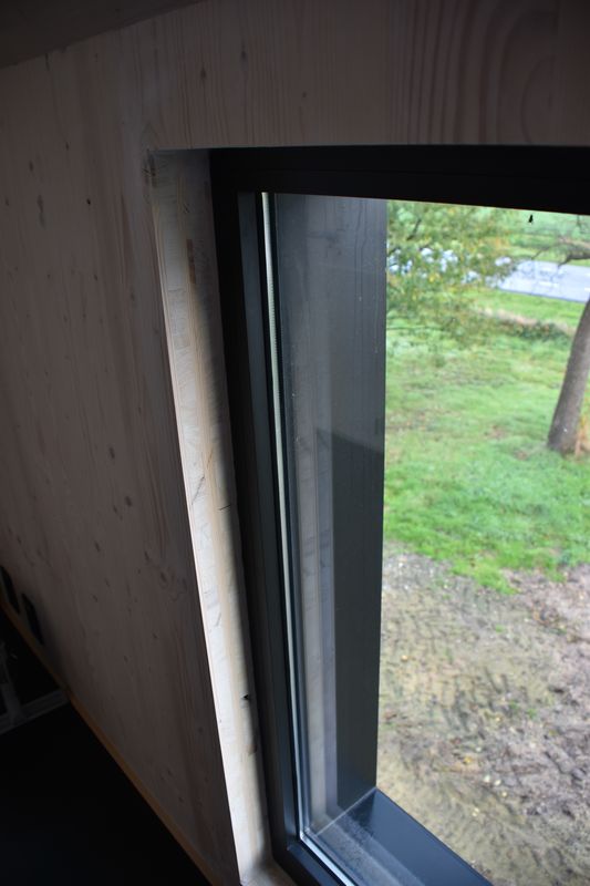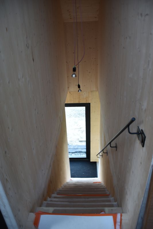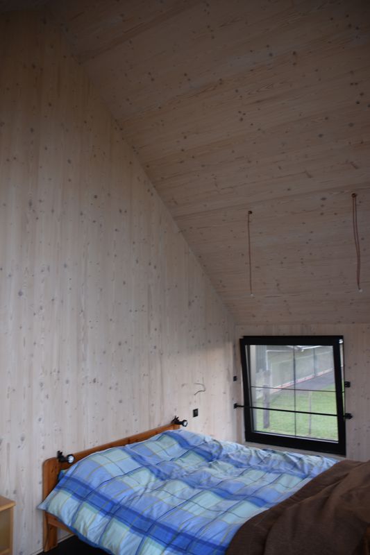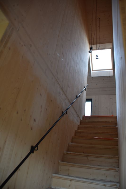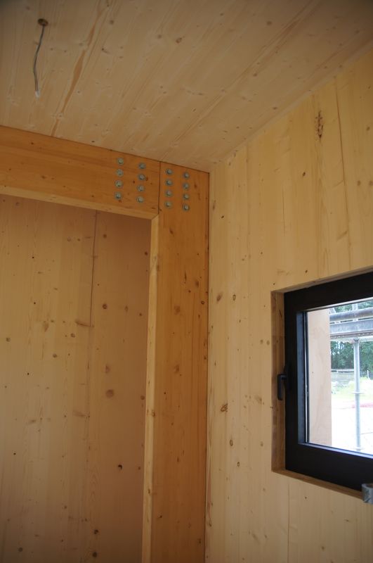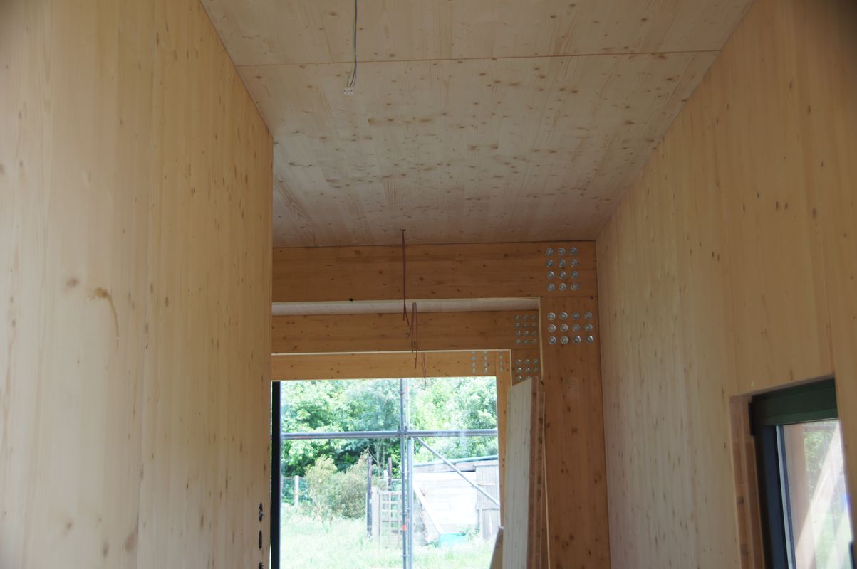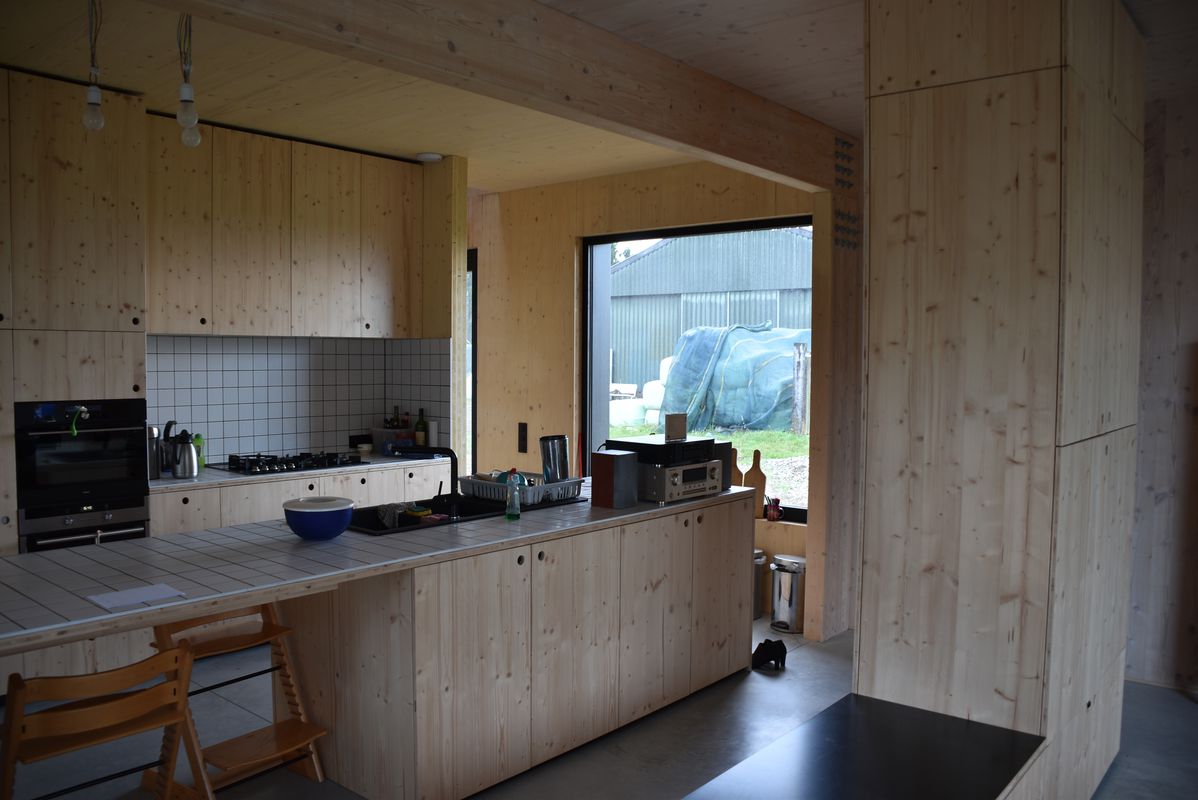 Een woning volledig uitgevoerd met houten elementen, wanden en vloeren.